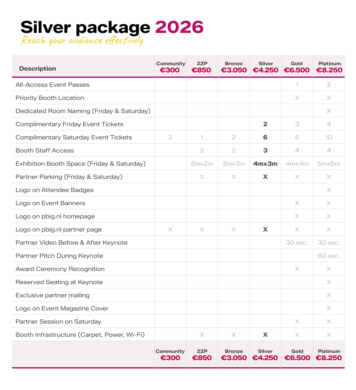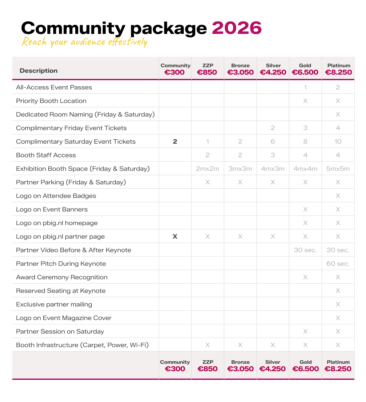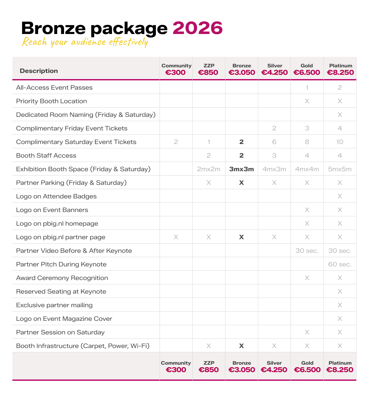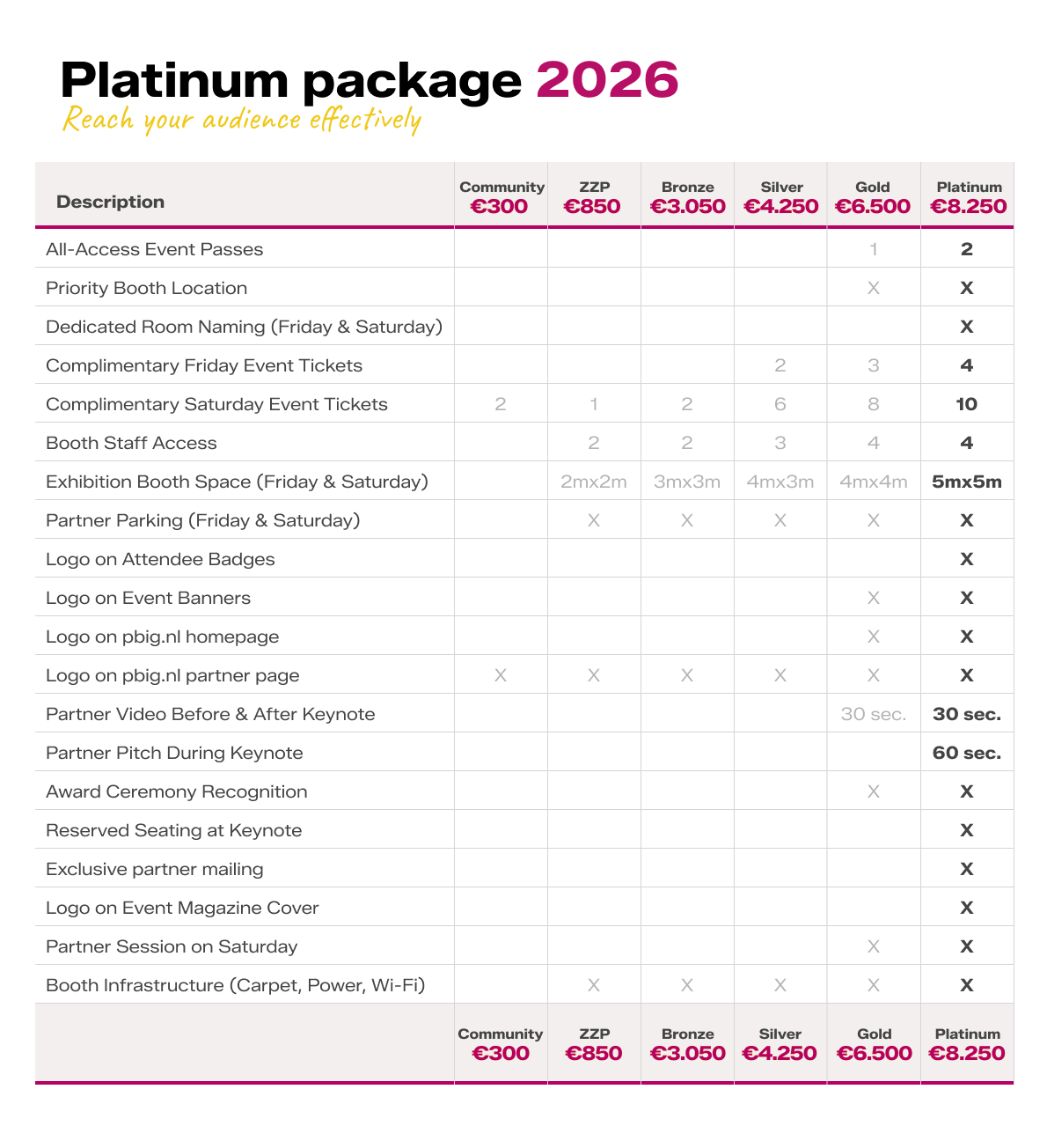 Thank you for your interest in partnering with the Power BI Gebruikersdagen. Our event brings together thousands of data professionals, Power BI users, and decision-makers from across the data and analytics ecosystem. By becoming a partner, your organization gains valuable visibility, connects with a highly engaged community, and contributes to one of the largest Power BI events in the world.